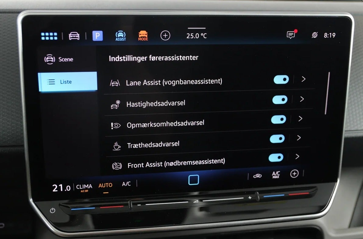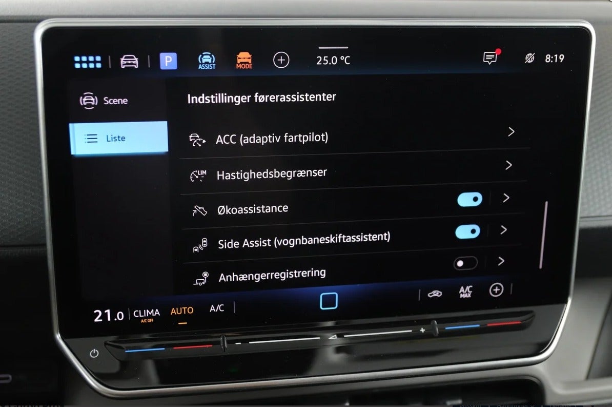 Digitalt cockpit, multifunktionsrat, læderrat, stofindtræk, kørecomputer, højdejust. førersæde, el-sidespejle, el-sidespejle m/varme, el-klapbare sidespejle, el-klapbare sidespejle m/varme, led kørelys, fuld led forlygter, adaptive forlygter, led baglygter, træk, aftageligt træk, automatgear, varmepumpe, centrallås, fjernb. centrallås, nøglefri tænding, fartpilot, adaptiv fartpilot med kø-assistent, udv. temp. måler, el-ruder, el betjente døre, elektrisk parkeringsbremse, type-2 ladekabel, app integration, parkeringssensor (bag), parkeringssensor (for), dæktryksmåler, automatisk lys, fjernlysassistent, db. airbags, airbag, 6 airbags, esp, automatisk nødbremsesystem